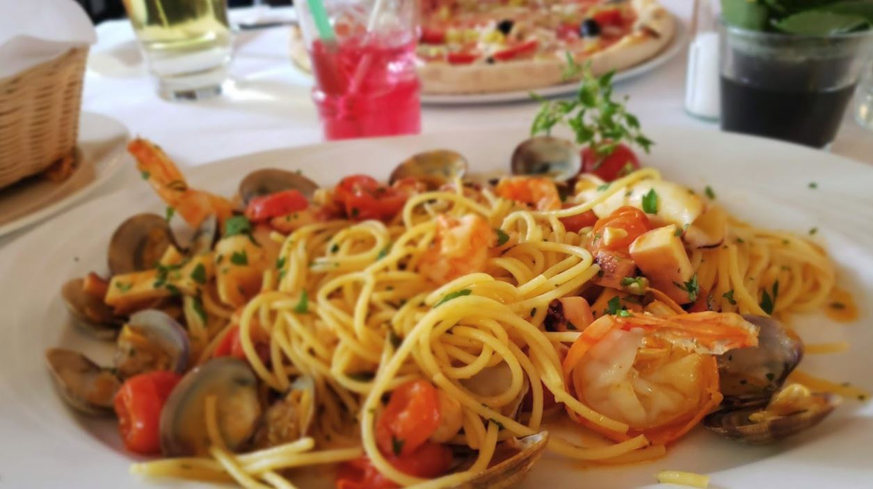 | SPAGHETTI CERTOSINA Scampetti, Knoblauch, Tomaten-Sahne-Sauce b |