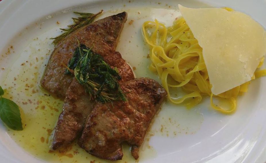 | SALTIMBOCCA ALLA ROMANA l, a, 8, o Kalbsmedaillons, Parmaschinken, Salbei |