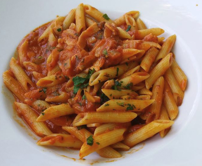 | PENNE CALABRESE Speck, Zwiebeln, pikante Tomatensauce |