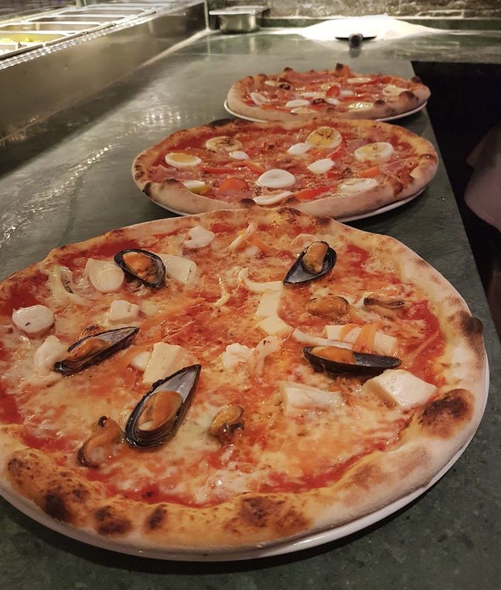 | Alle Pizzen werden mit Mozzarella und Tomatensugo zubereitet und enthalten Weizen / Gluten. Extrawünsche werden berechnet Unsere Speisen können Allergene und Kreuzkombinationen enthalten Wir haben auch Vollkorn,- und glutenfreie Pasta Bitte sprechen Sie die Servicekraft an. Zusatzstoffe: 1)mit Farbstoff 2)mit Konservierungsmittel 3)mit Antioxydationsmittel 4)mit Geschmacksverstärker 5)geschwärzte Oliven 6)mit Süssungsmittel 7)mit Stabilisator 8) Phenylalaninquelle 9) Koffeinhaltig 10) Schwefeldioxid u. Sulfite. Allergene: a) Weizen b)Krebstiere c)Eier d) Fisch e)Erdnüsse f)Soja g)Milch h)Pistazien i)Sellerie J)Sellerie k) Senf l)Sulfit m)Lupine n) Weichtiere o) Schalenfrüchte |
